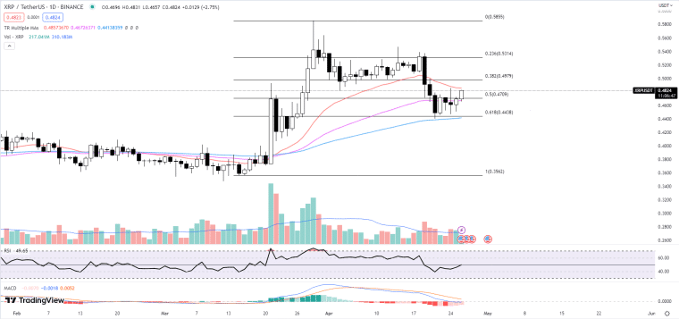 즉 리플 코인의 가격 반등이 곧 발생할 가능성이 있는 것으로 풀이된다. 하지만 만약 리플 코인 가격이 $0.45 아래로 하락한다면 약세가 우세해질 가능성도 배제할 수 없다.