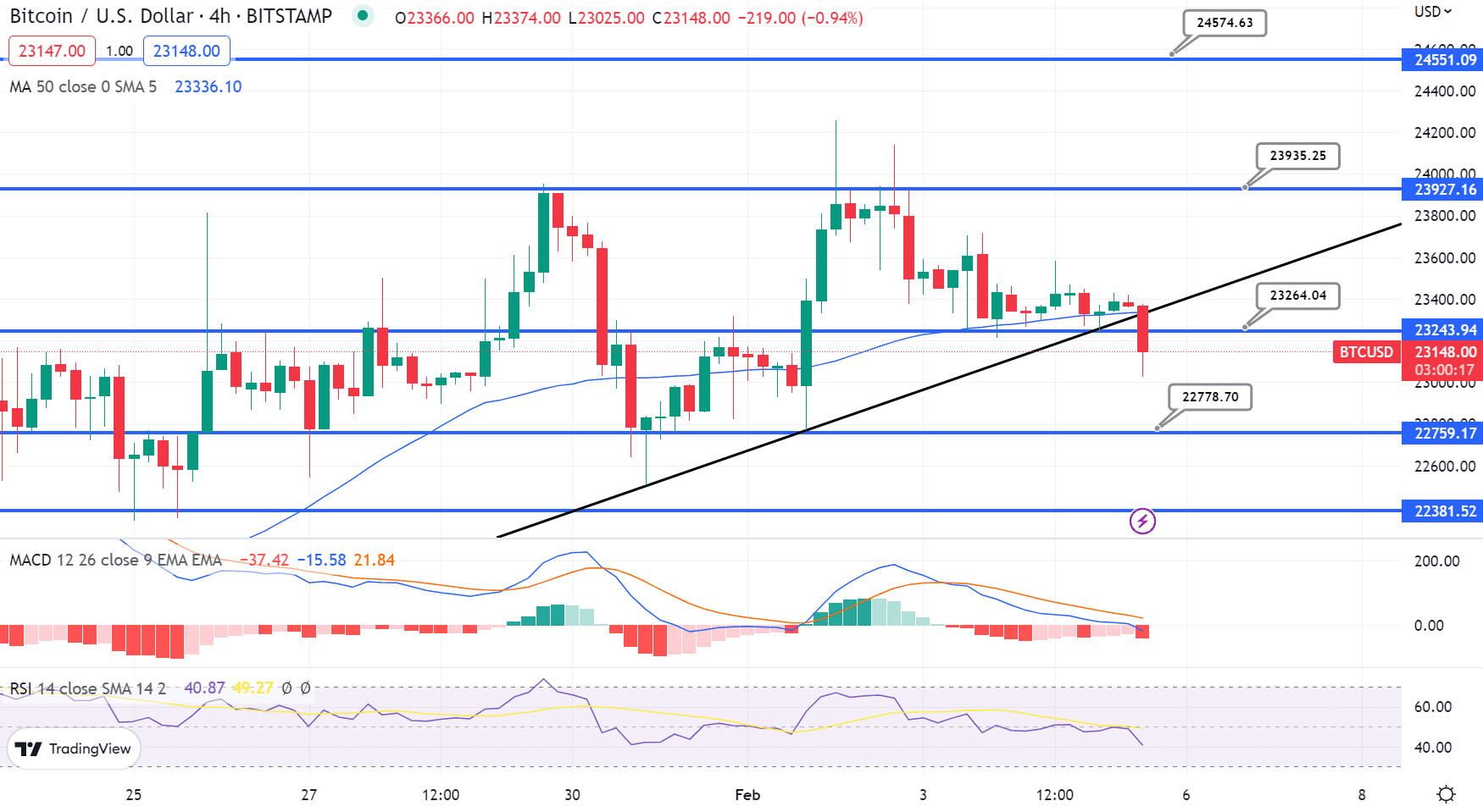 기술적 분석 측면에서 비트코인은 상승 추세선에서 강한 지지선 역할을 했던 2만 3,250달러선이 붕괴되었다.