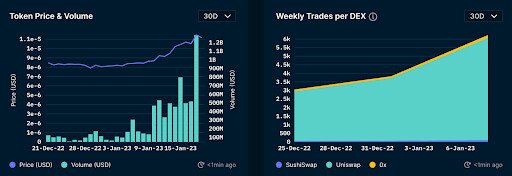 시바이누 가격은 지난 2주 동안 34% 이상의 수익을 올렸고, 한 달 기준으로 37% 상승하여 0.00001112달러에 거래되고 있다. 하지만 이번 미 법무부 발표로 인해, 10주 동안의 최고점인 0.00001291달러에서 하락하게 되었다.
