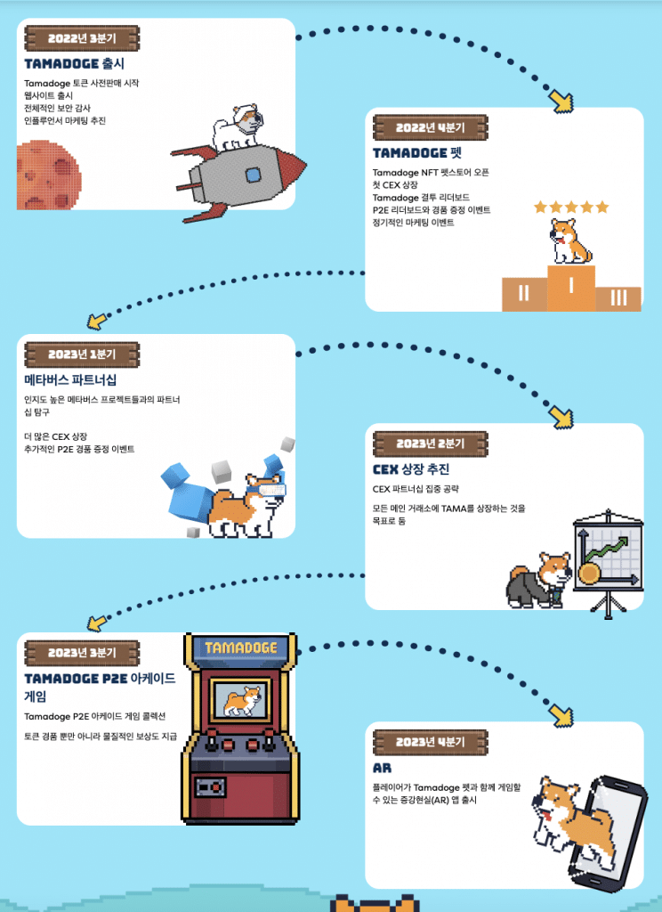 - 2022년 4분기: 타마도지 NFT 펫스토어와 전투 및 P2E 순위표 출시 예정