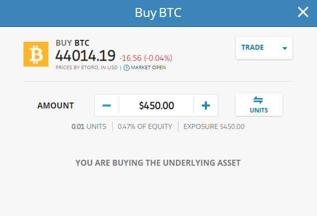 - 코인의 가격이 45,000달러일 때 비트코인에 투자하고 싶다고 가정해 봅시다.